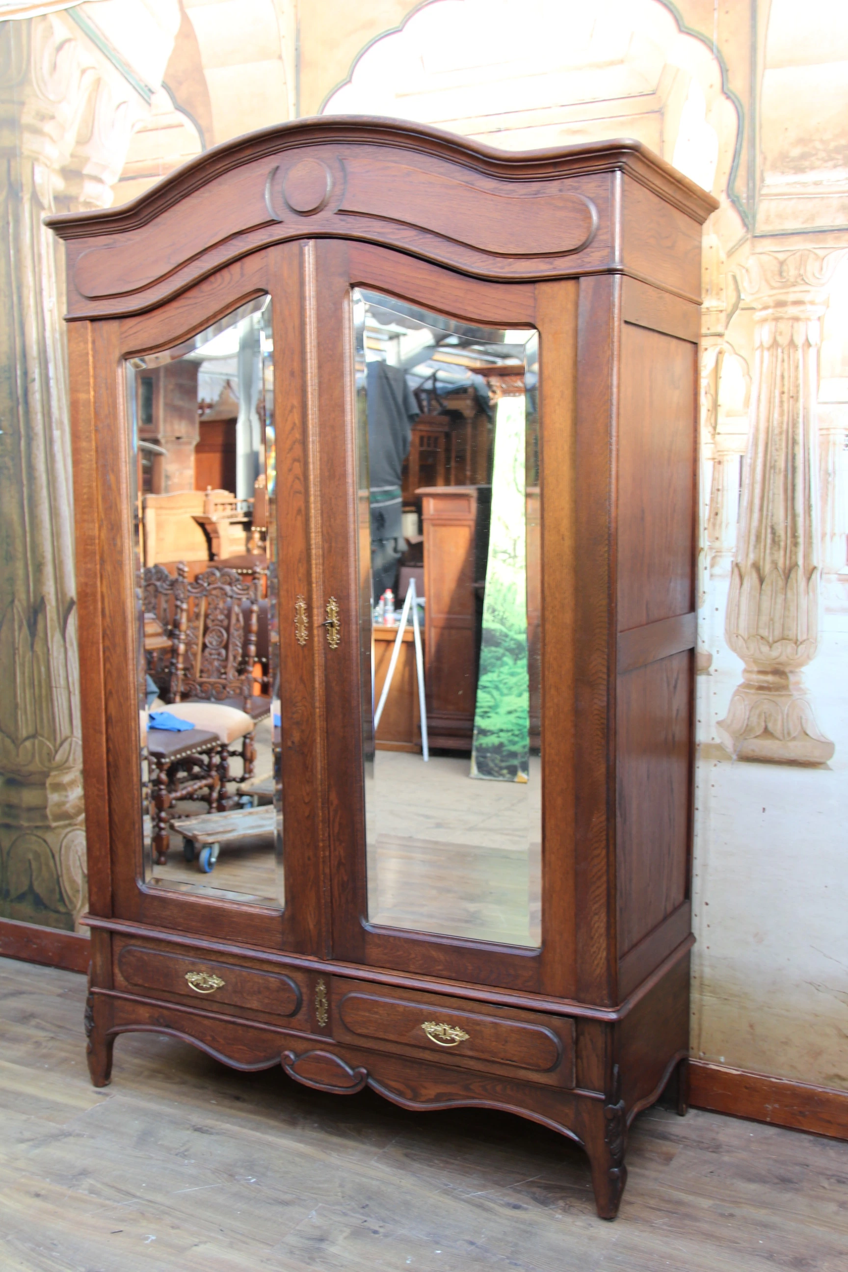 Zeitloser antiker & massiver Biedermeier Kleiderschrank mit geschliffenen Spiegeln