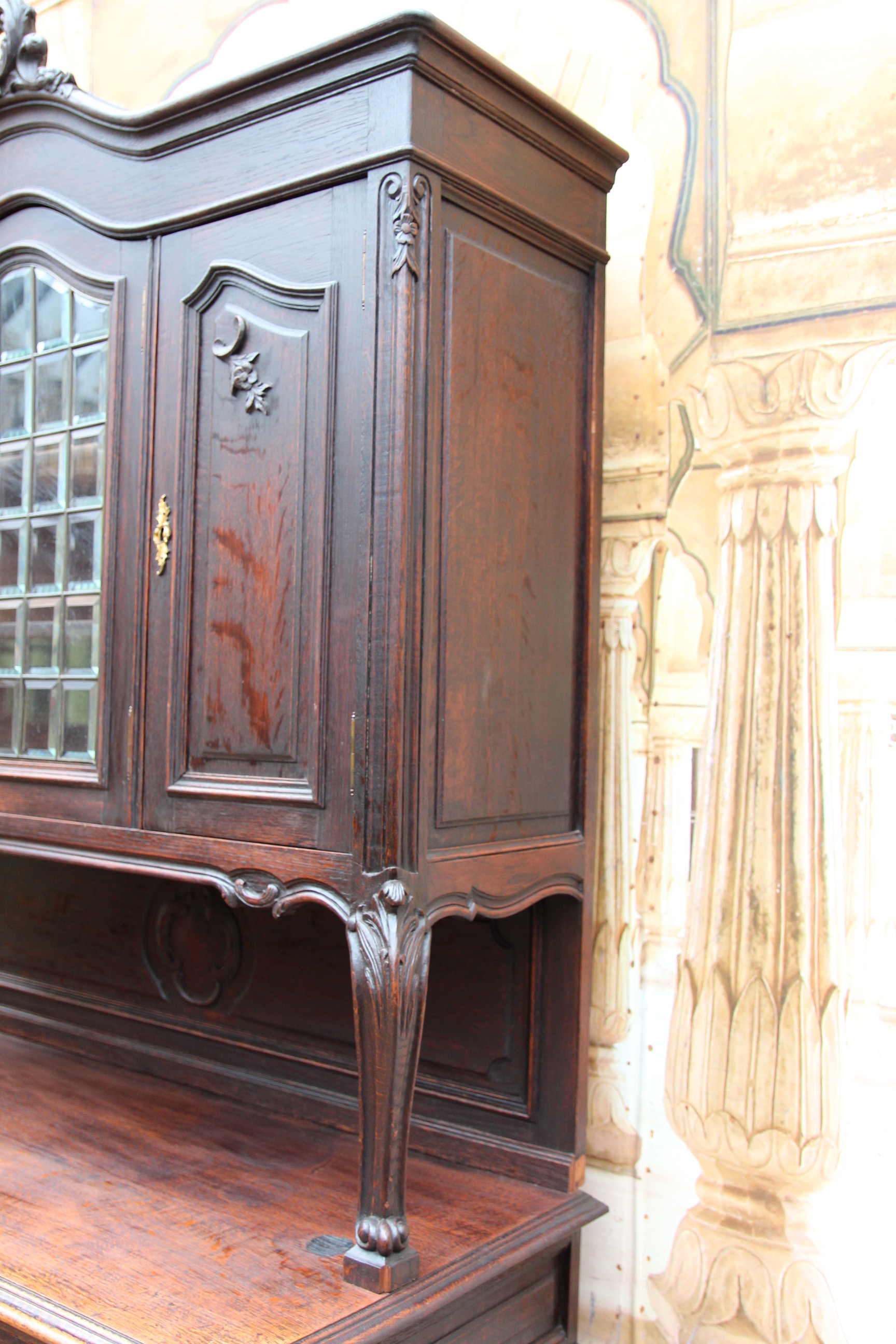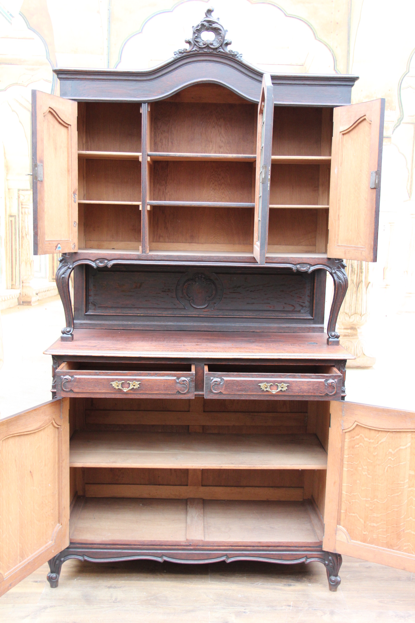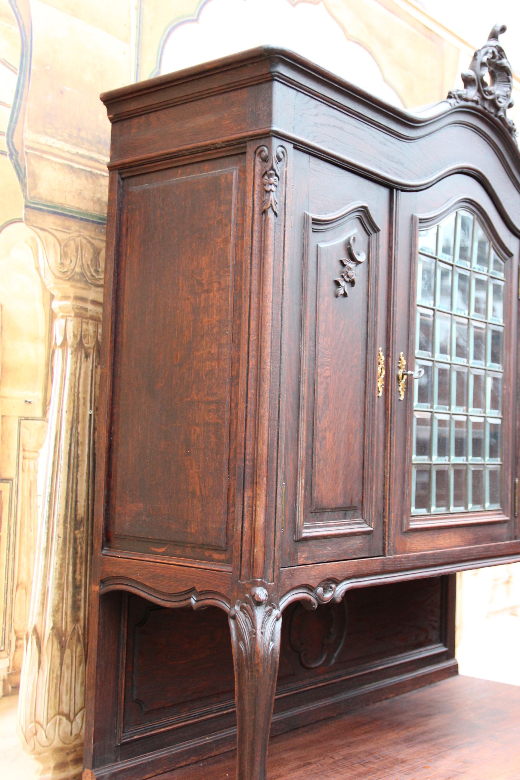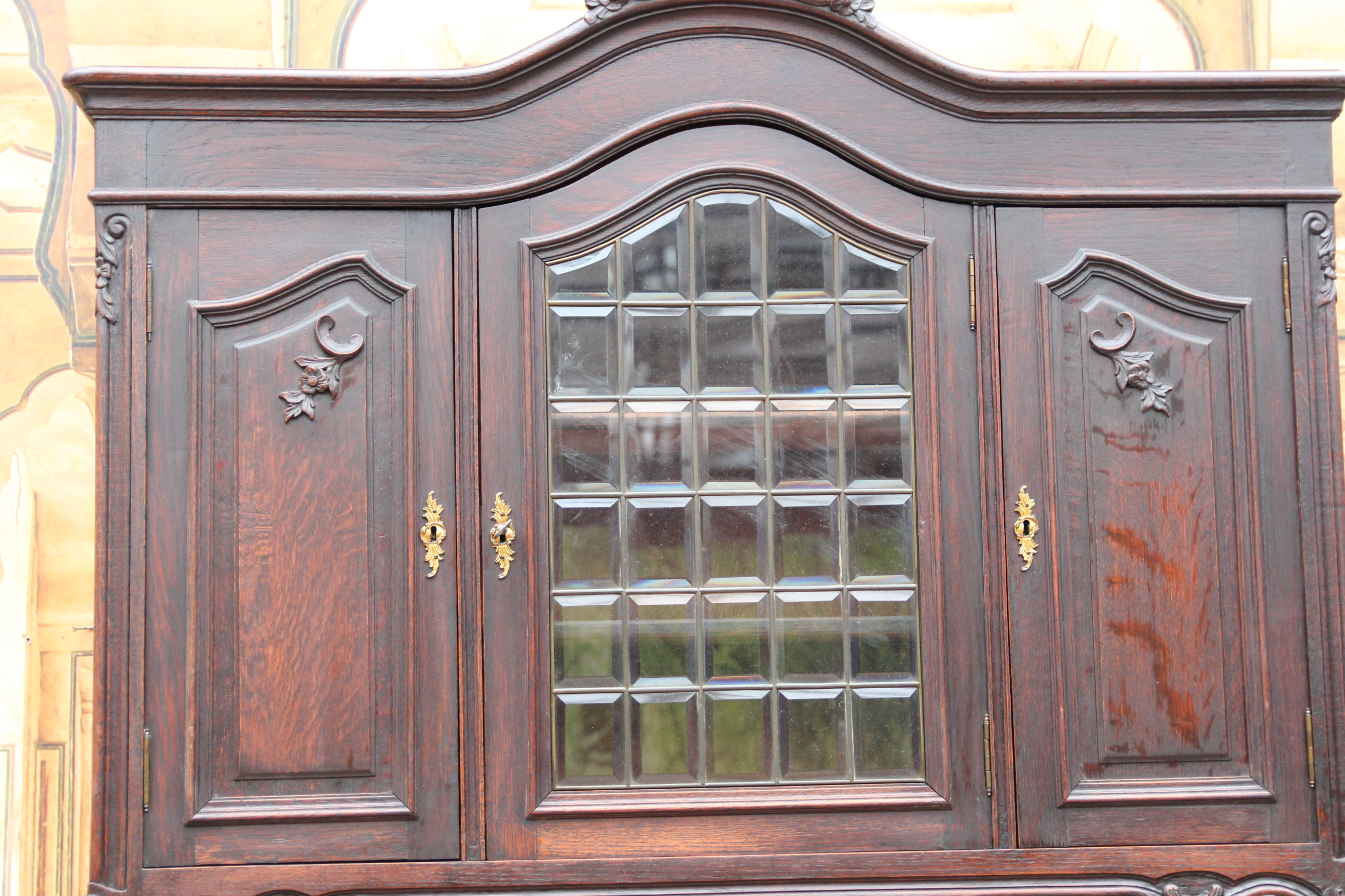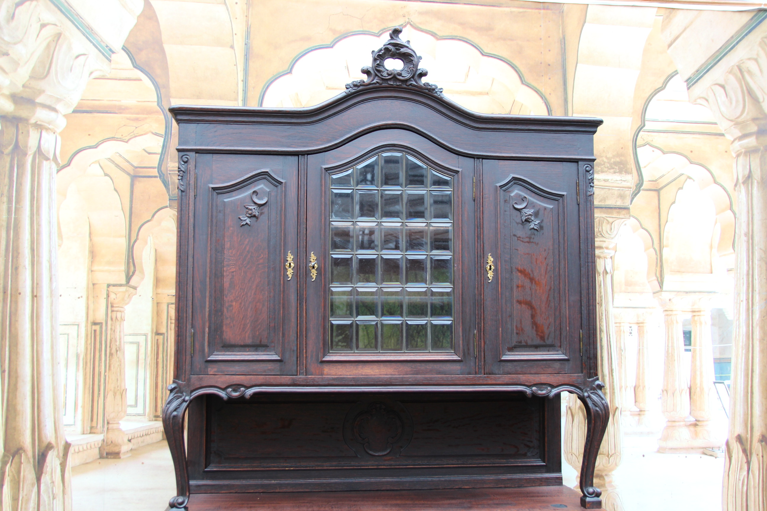 Das schöne Stück hat oben drei Türen. Eine mit geschliffener Verglasung bietet es viel Stauraum.