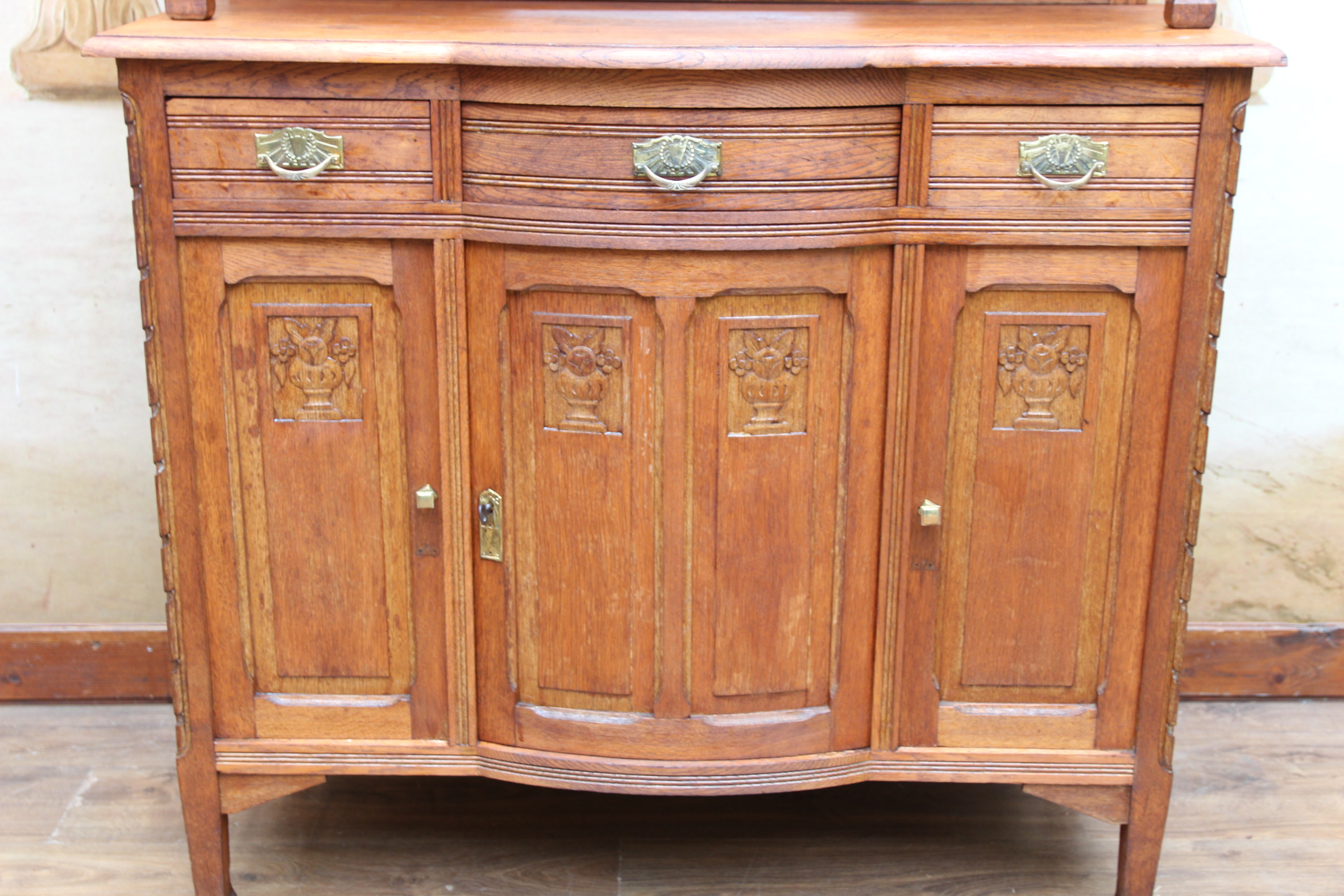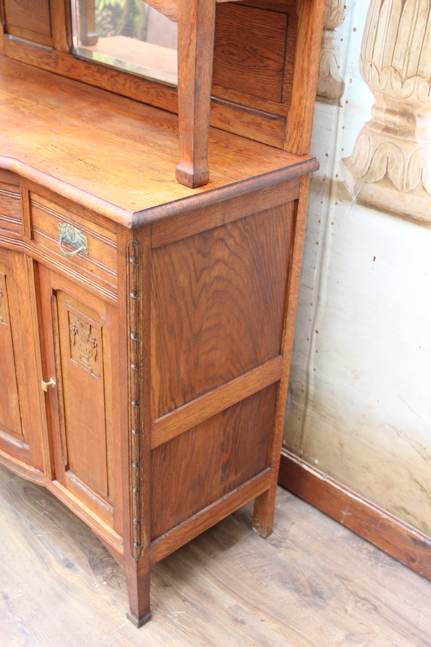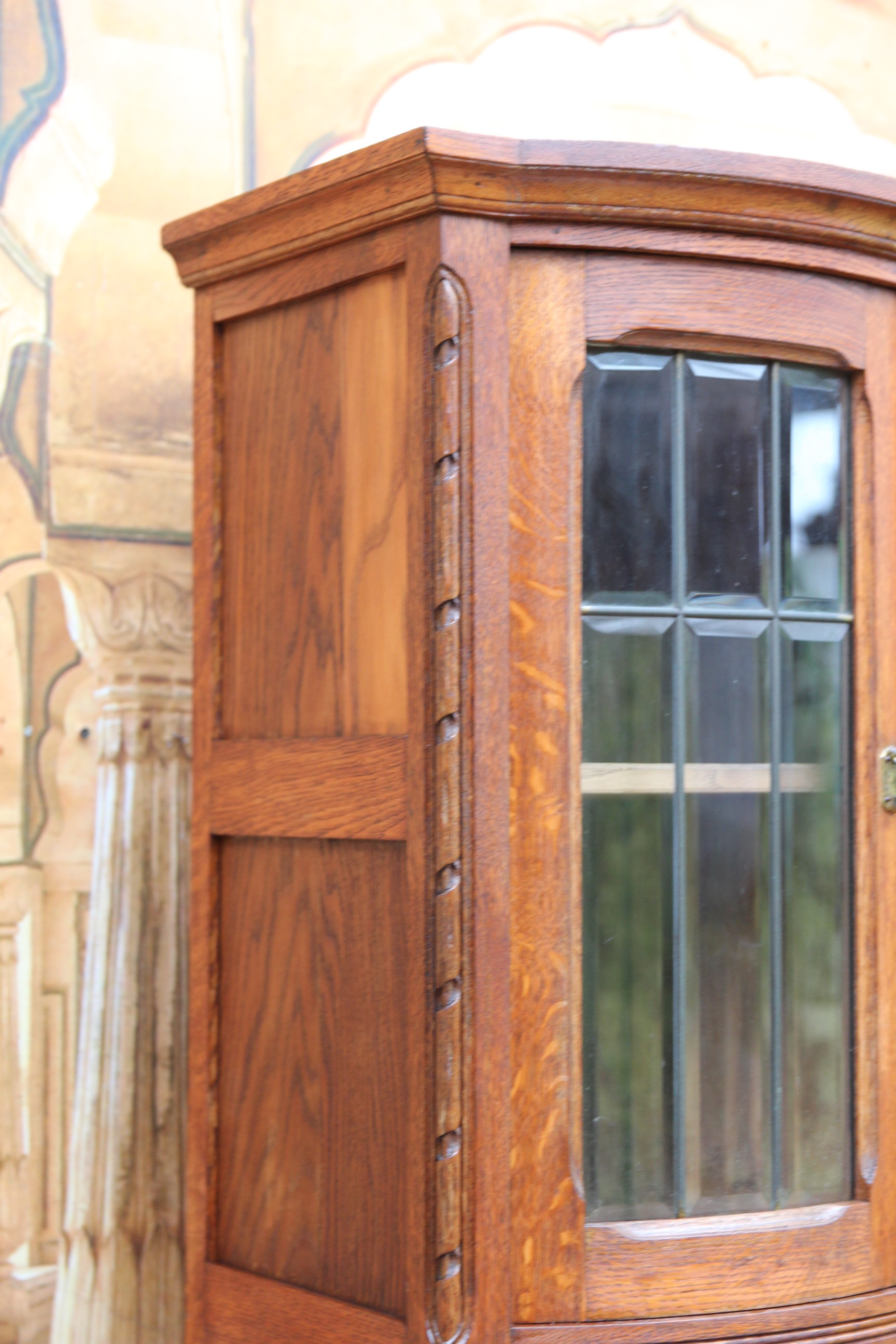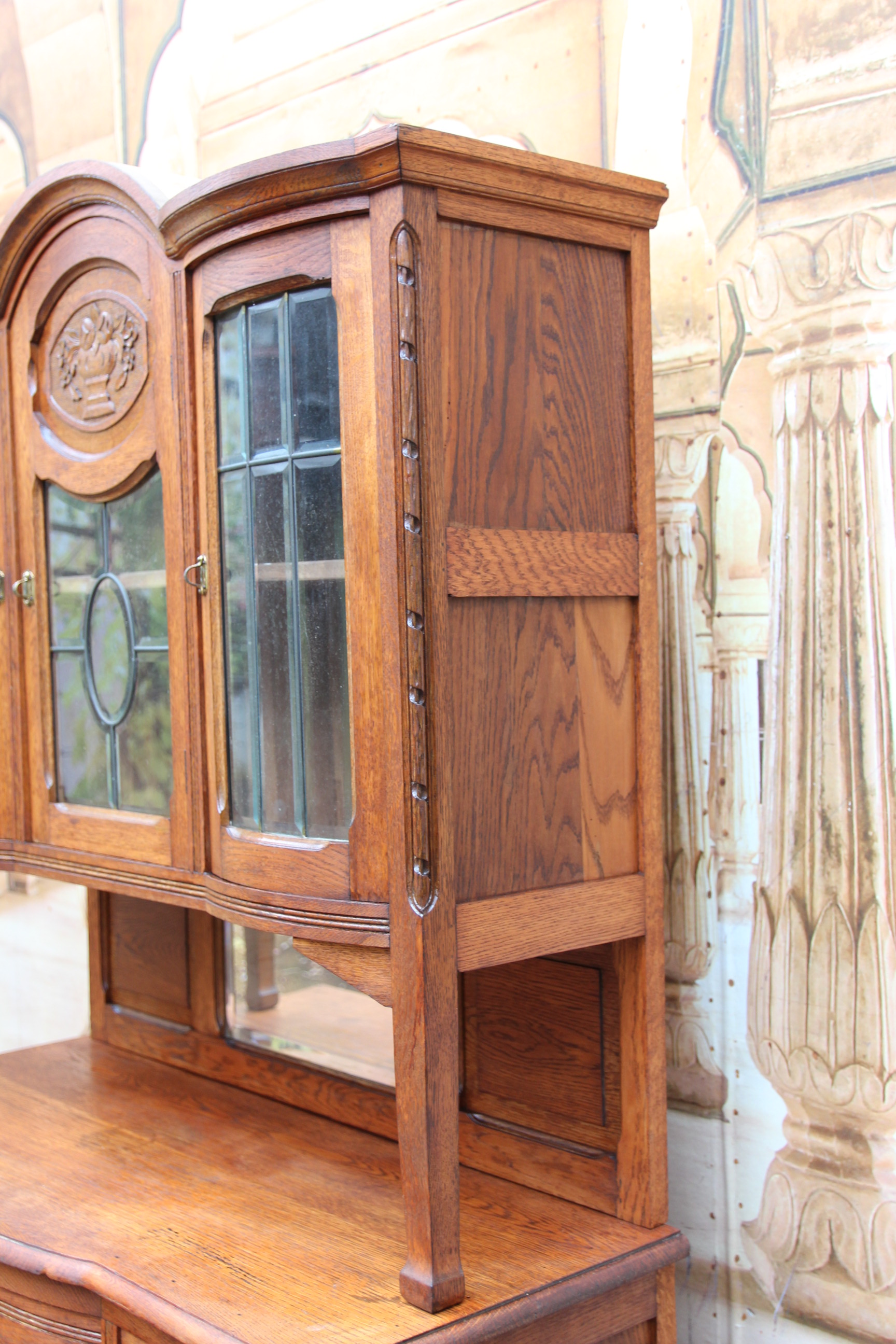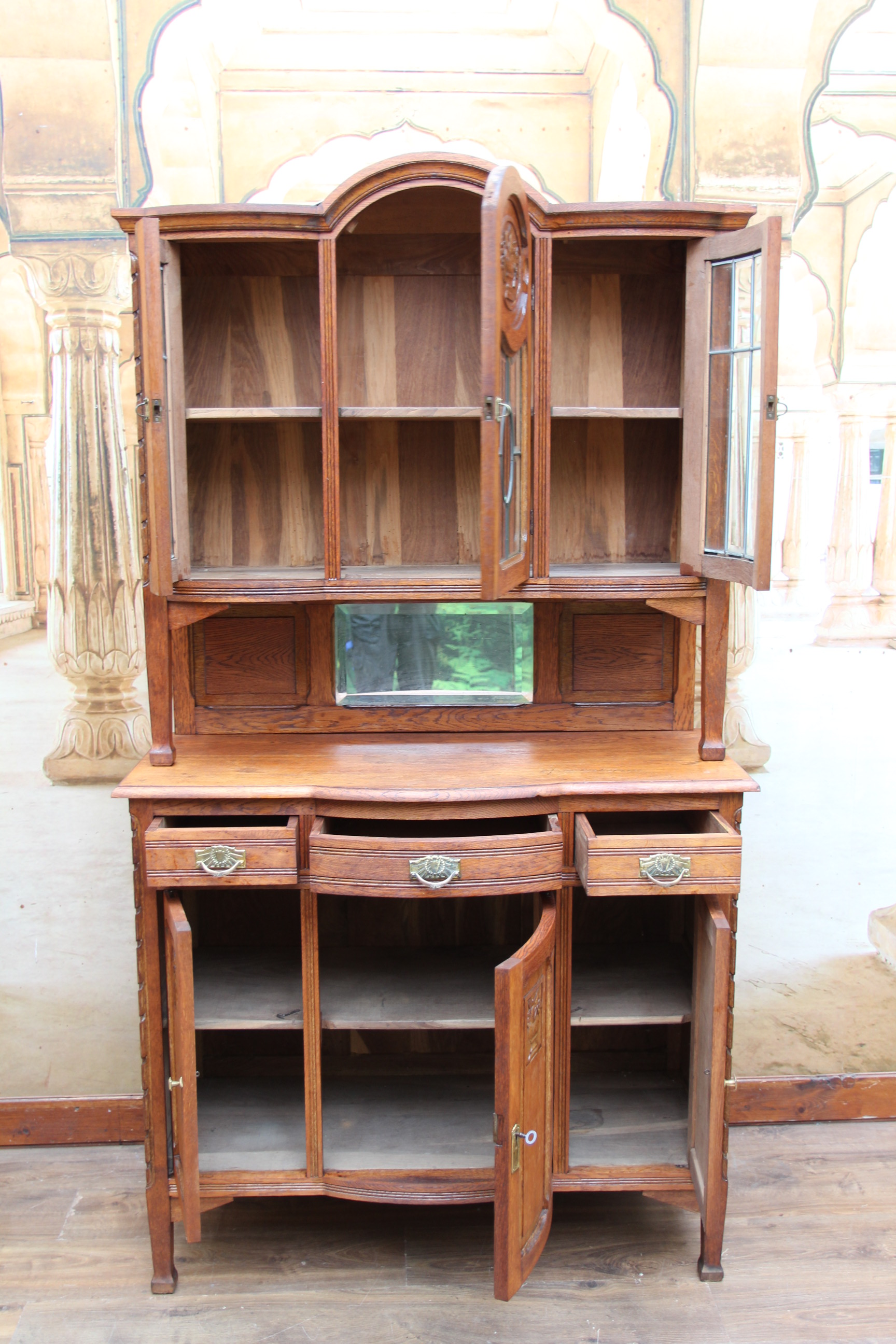 Das schöne Stück hat oben drei Türen mit geschliffener Verglasung bietet es viel Stauraum.