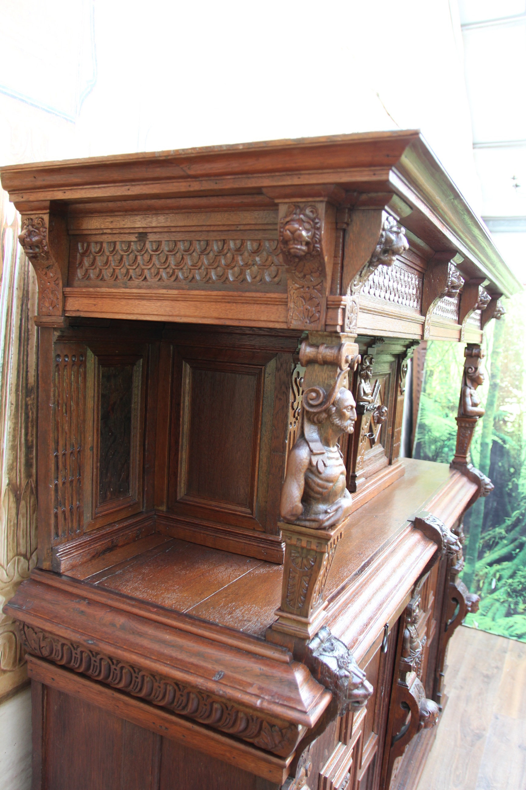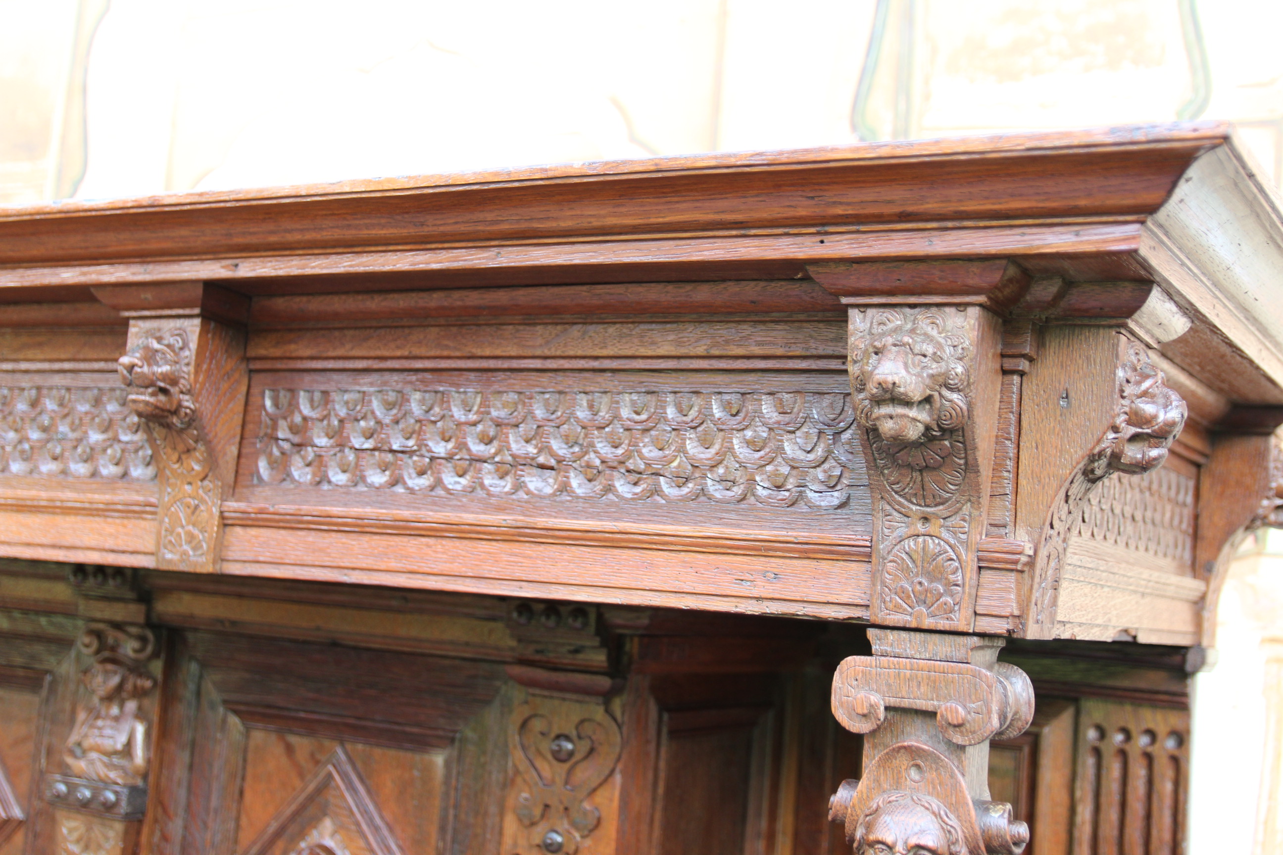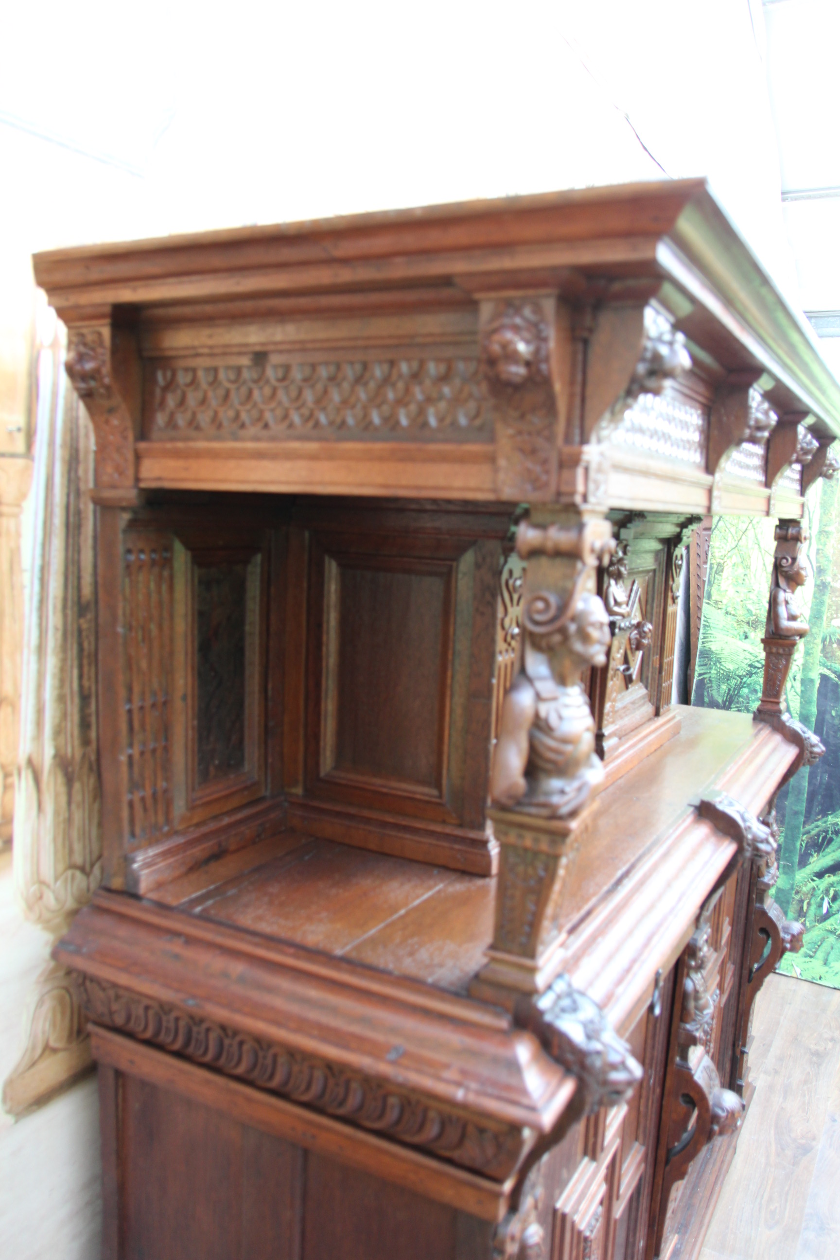 großer Prunkvoller antiker & massiver Gründerzeit Kabinettschrank mit Kunstschnitzereien