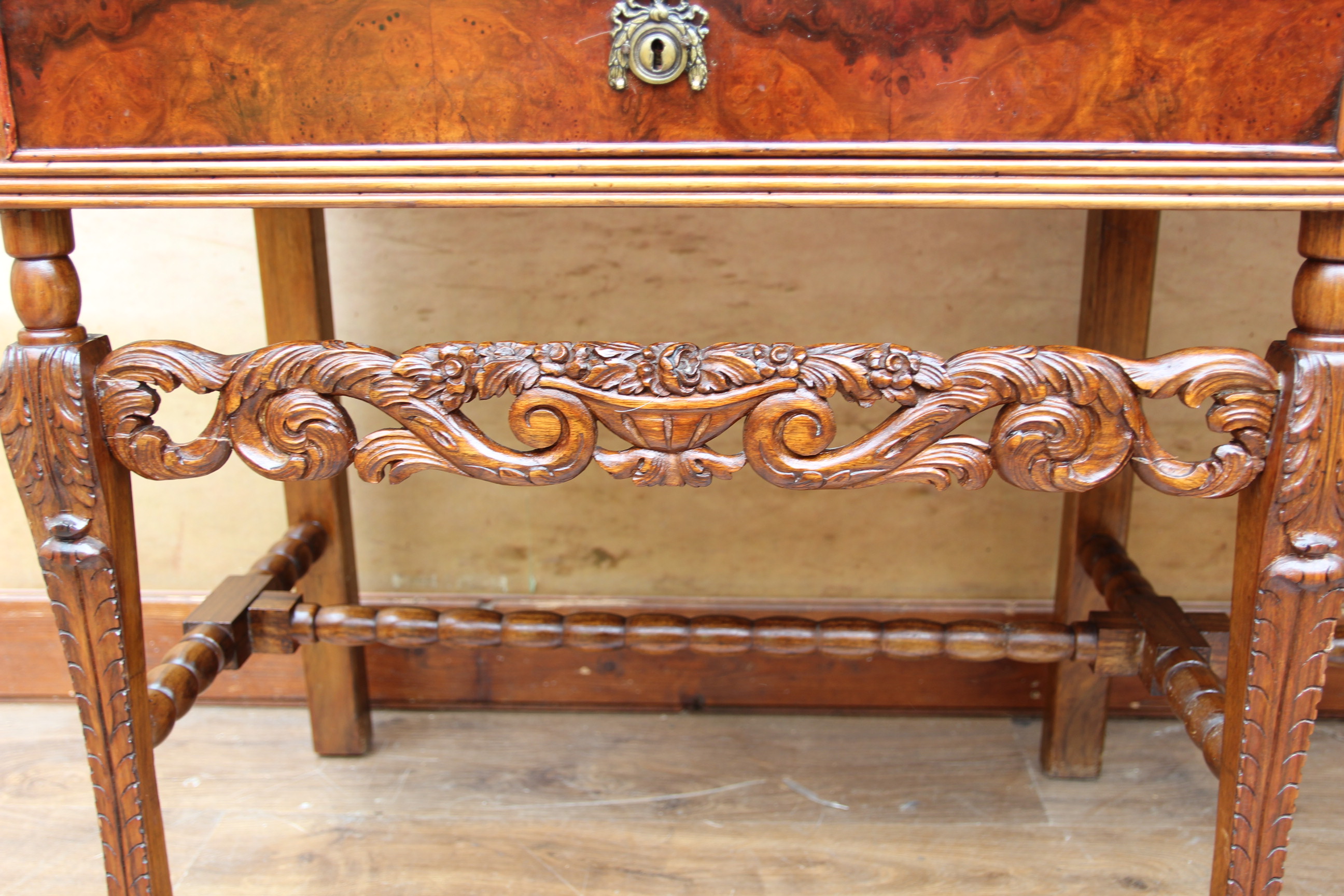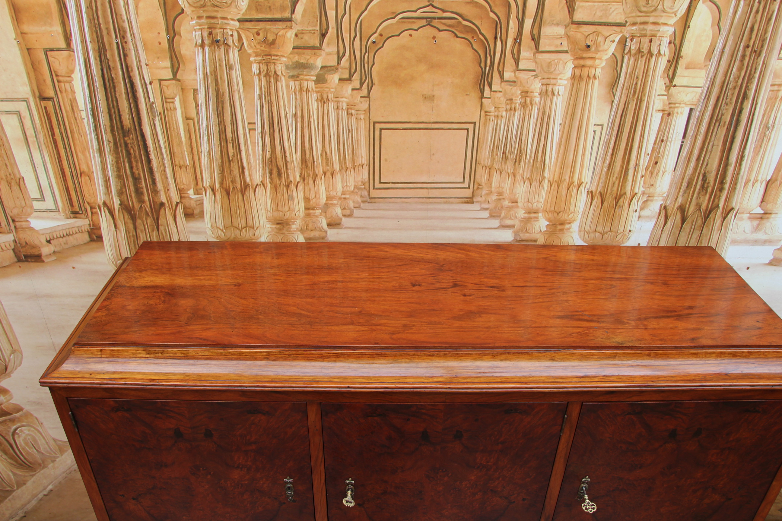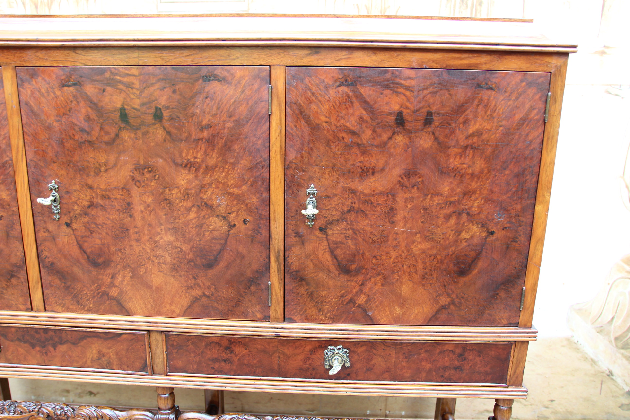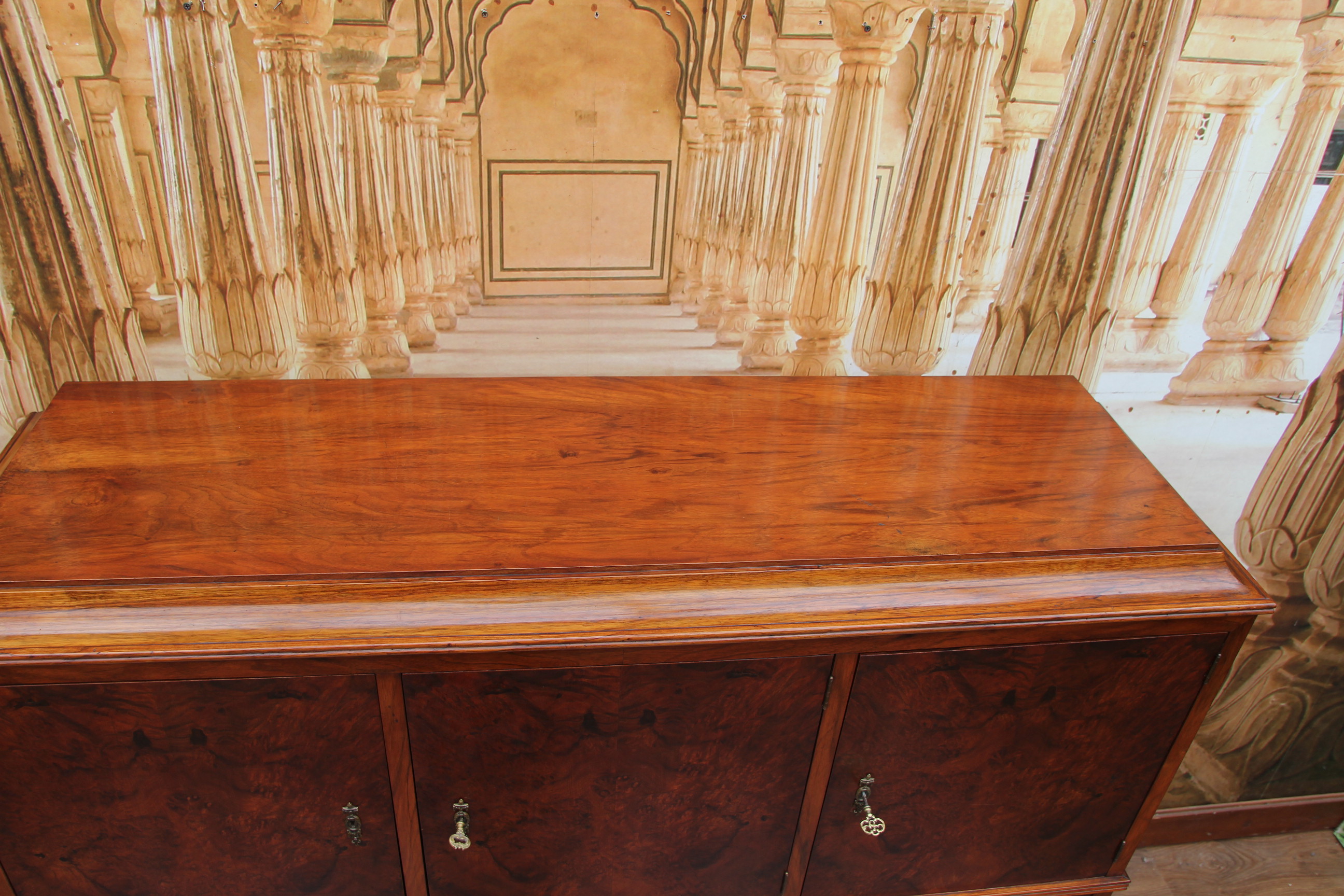 Gefertigt aus massivem Eichenholz mit Wurzelholzfurnier enthält es außerdem 3 Türen und 2 Schubfächer.