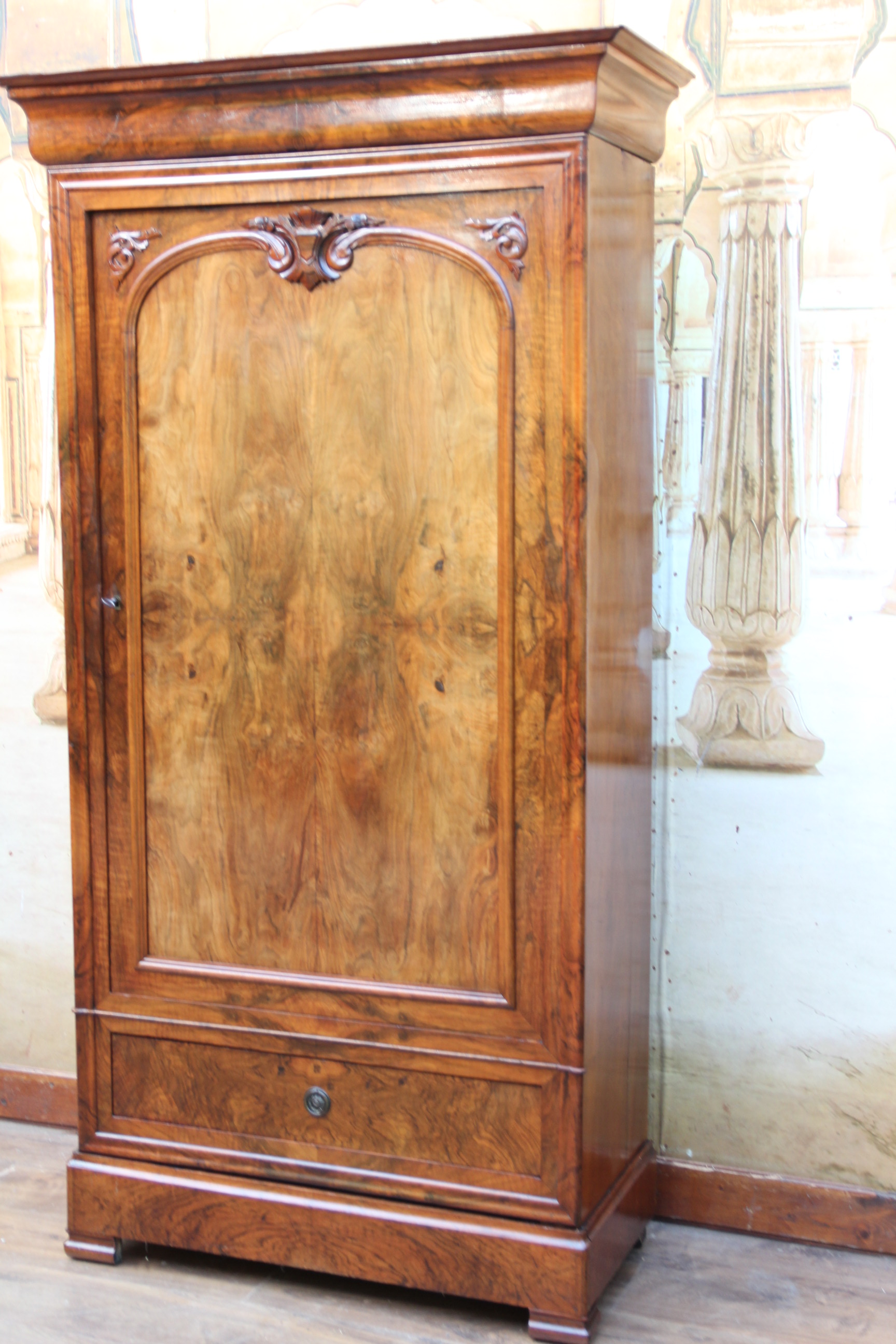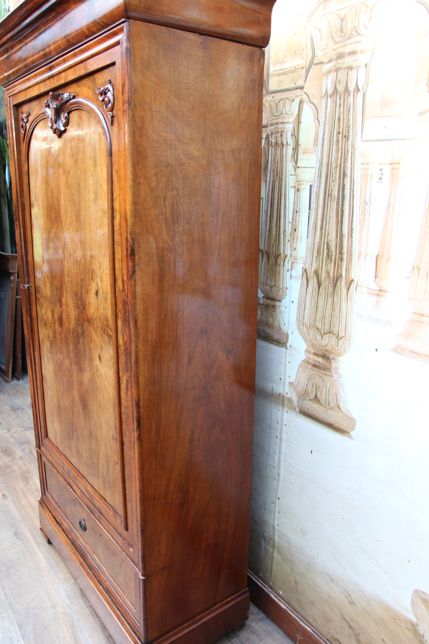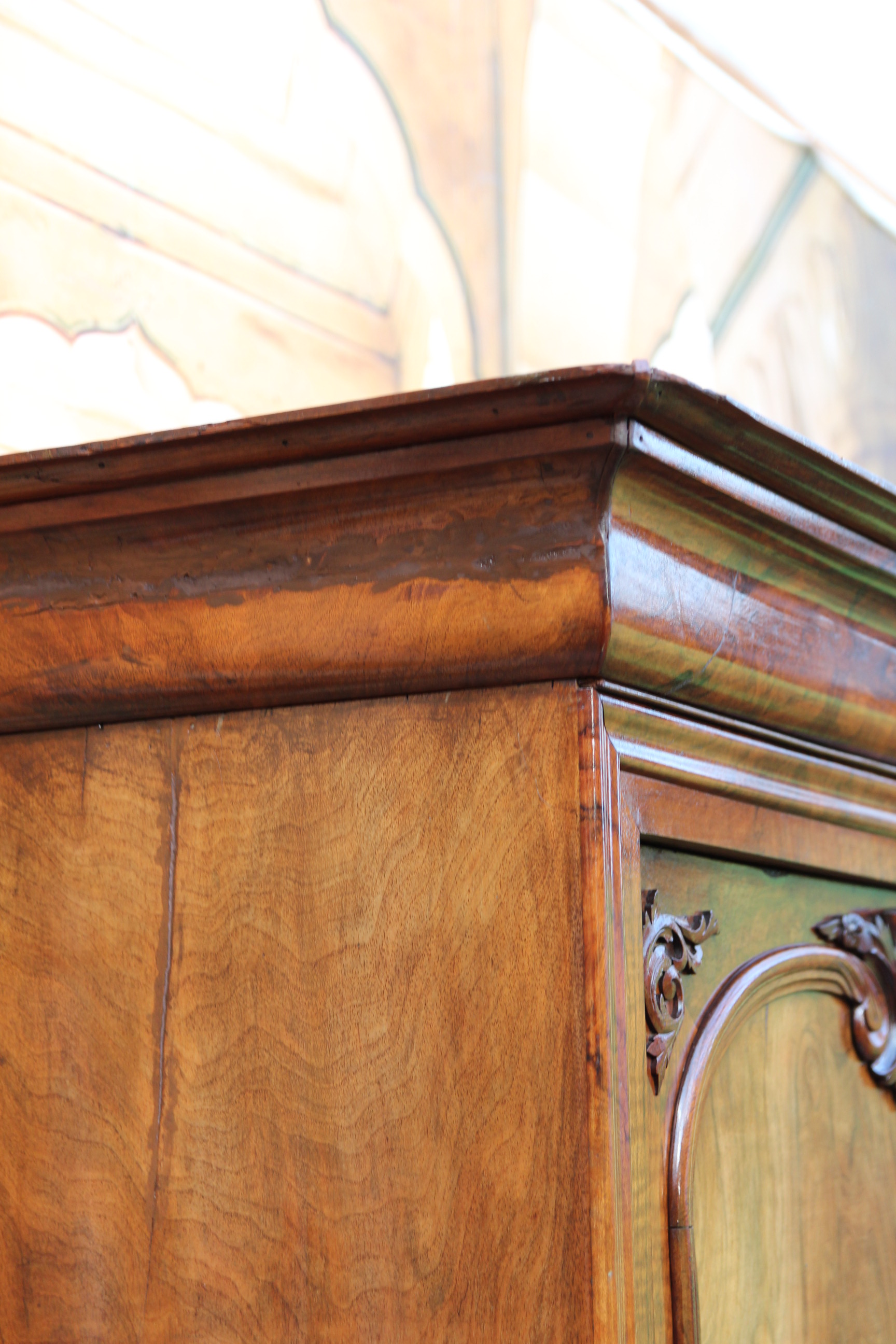 Der Schrank hatte mal altersbedingt den Holzwurm zu Gast, der wurde erfolgreich durch ein Heißluftverfahren ohne Chemikalien bekämpft.
