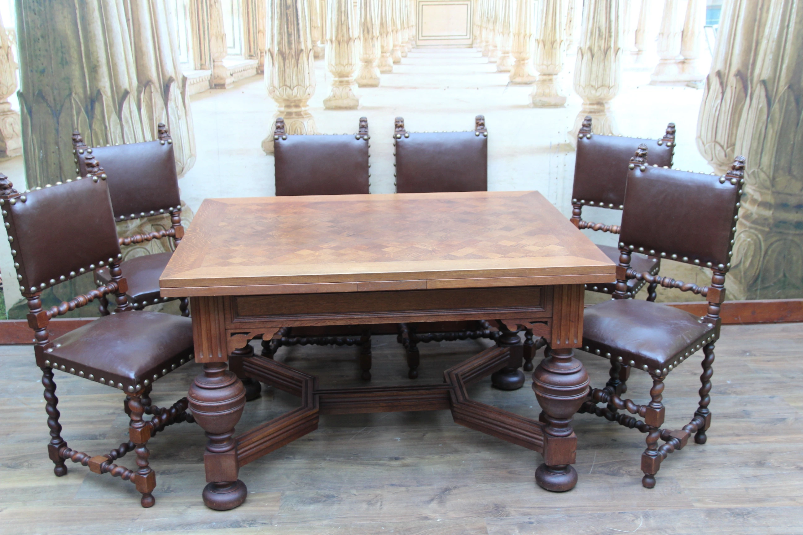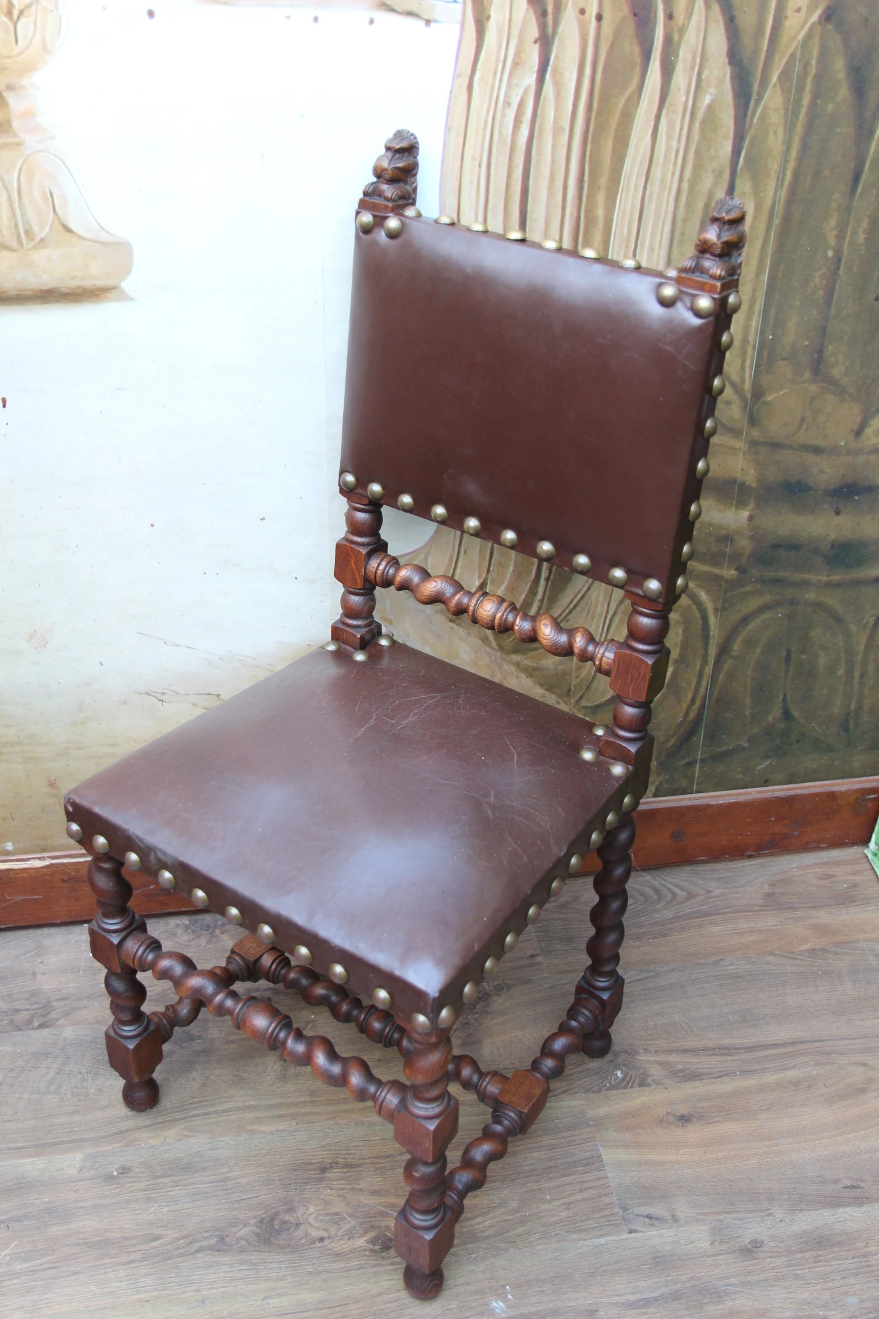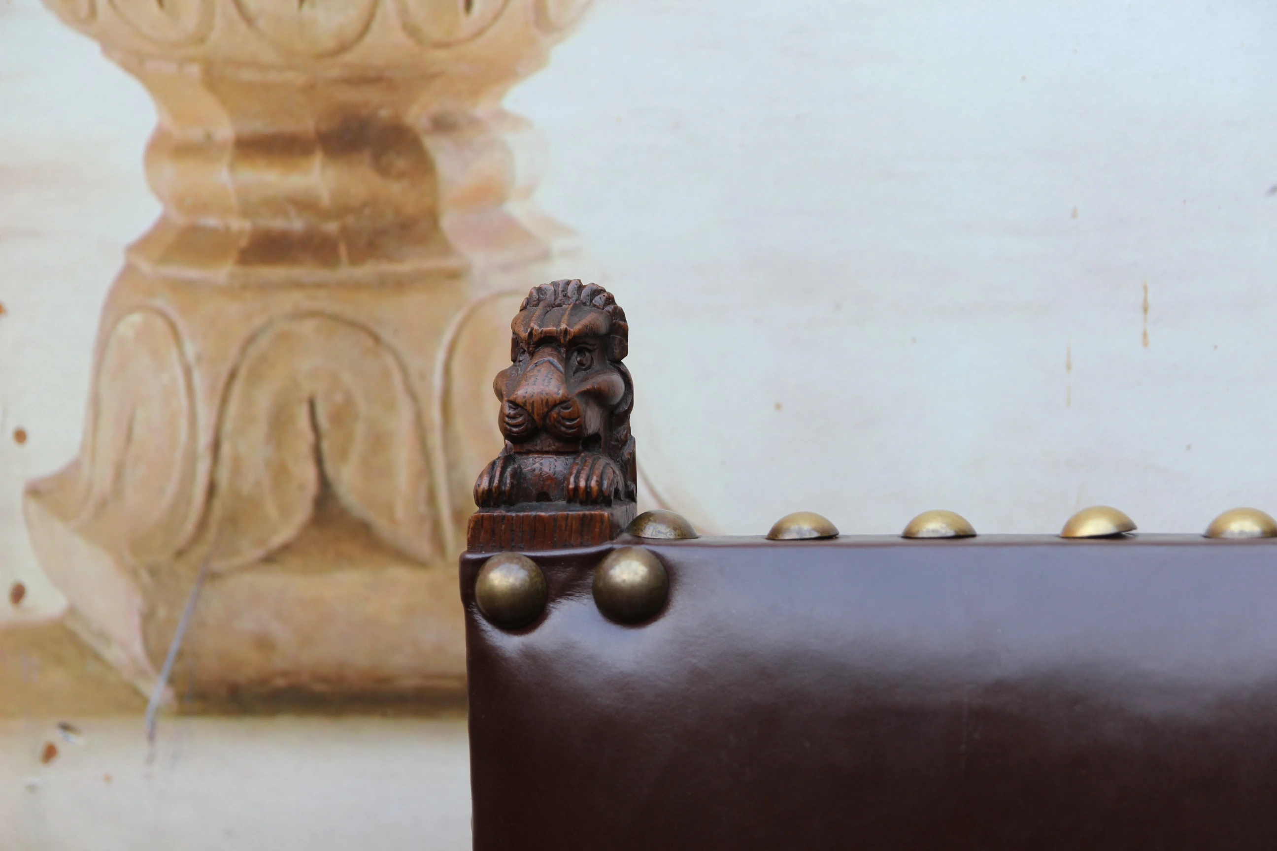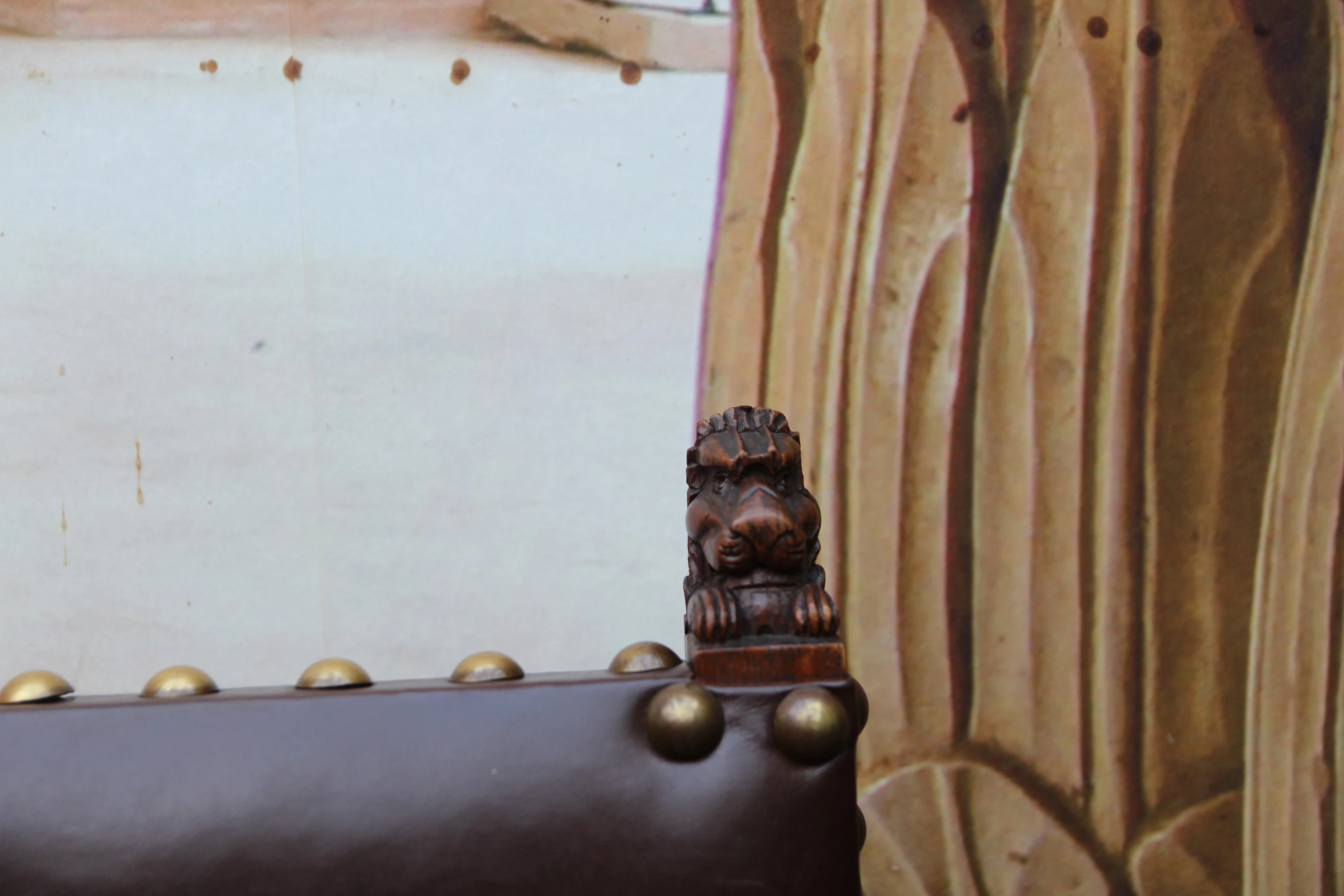 Besonders auffällig sind die wunderschönen Schnitzereien. Die Sitzfläche und Rückenlehne sind mit originalen Leder.