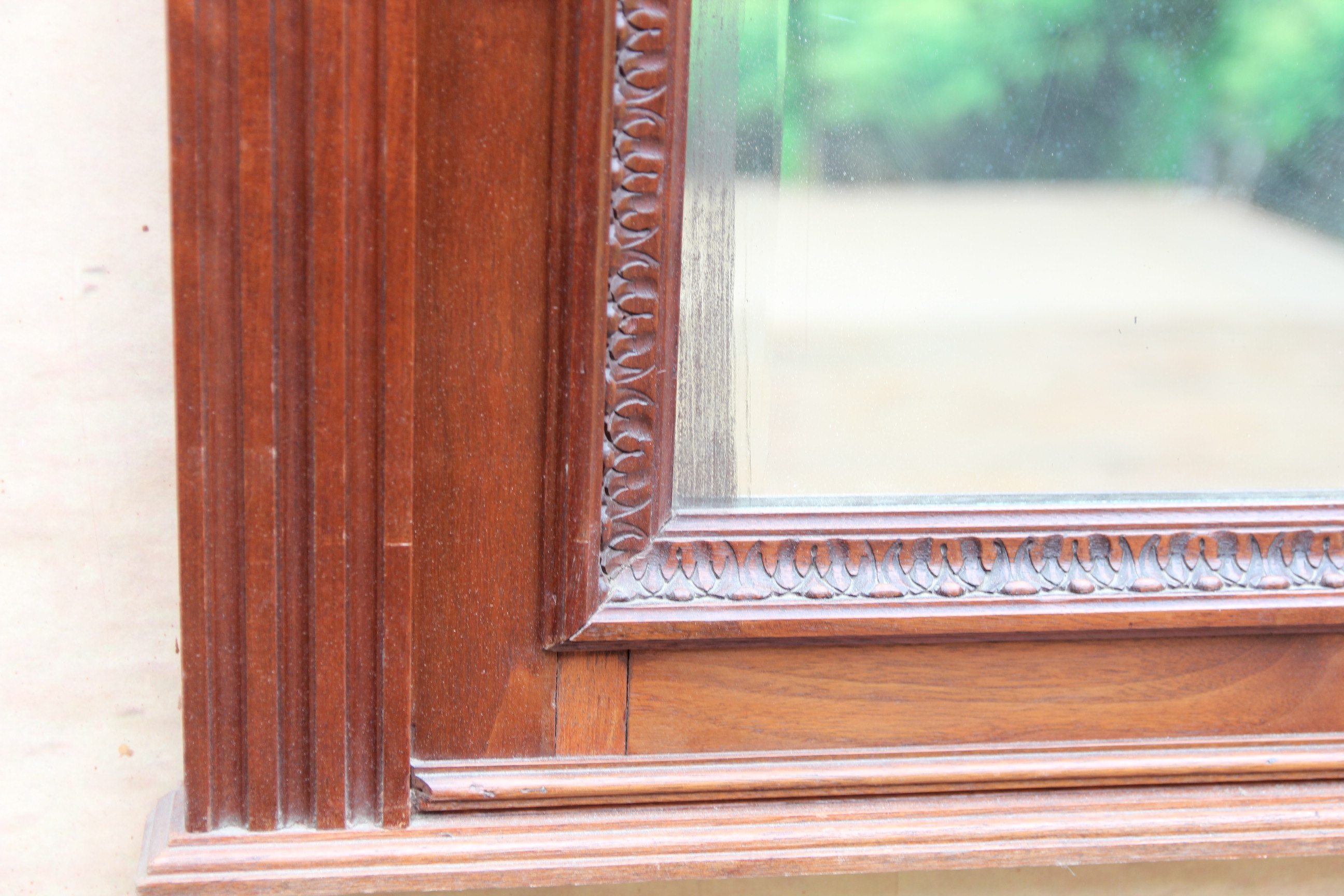 Das Spiegelglas ist geschliffenen und der Rahmen ist gefertigt aus massivem Nussbaumholz.