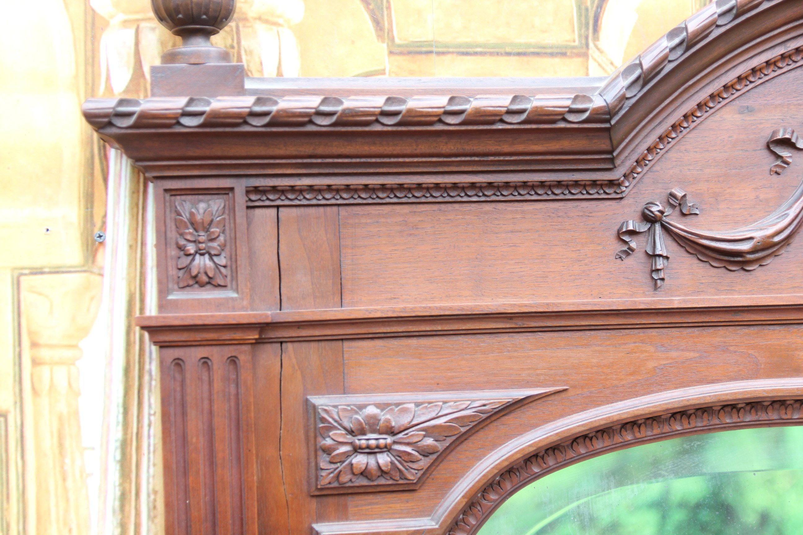 Traumhafte & selteneantike Gründerzeit Aufsatz Anrichte Vielseitig einsetzbar bietet diese seltene Gründerzeit Anrichte viel Platz und dient gleichzeitig als ästhetisches Accessoire. Gefertigt aus massiven Nussbaumholz, es enthält außerdem zwei Schubfächer und zwei Türen. Das edle Stück ist nicht zerlegbar und wird im ganzen geliefert. Die Anrichte hatte mal minimal altersbedingt den Holzwurm zu Gast, der erfolgreich in einem Heißluftverfahren ohne Chemikalien behandelt wurde und nicht mehr vorhanden ist. Dieses Möbelstück stammt aus Europa um 1880 und ist eine wunderschöne Antiquität. Maße: Höhe 215 cm, Breite 140 cm, Tiefe 60 cm
