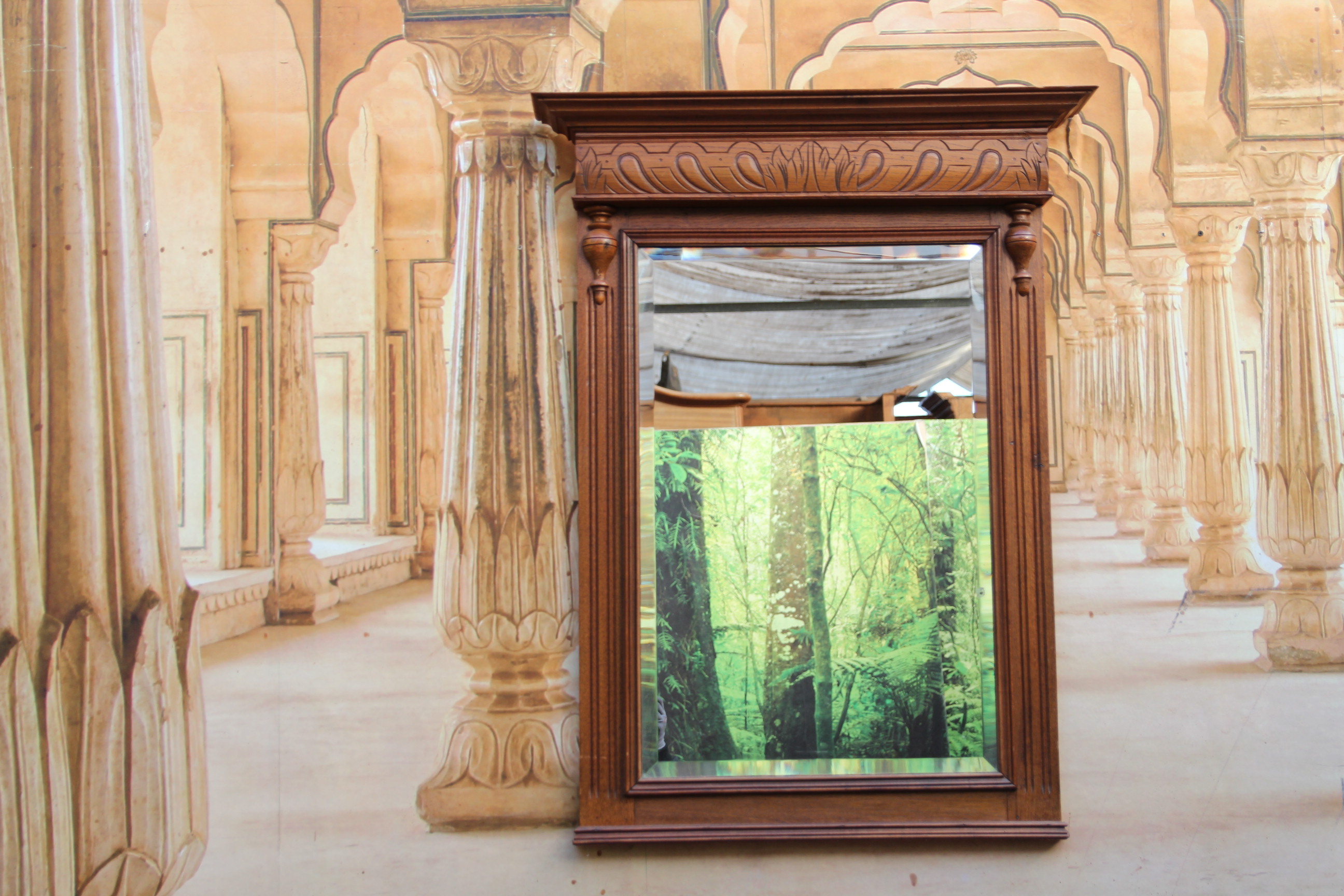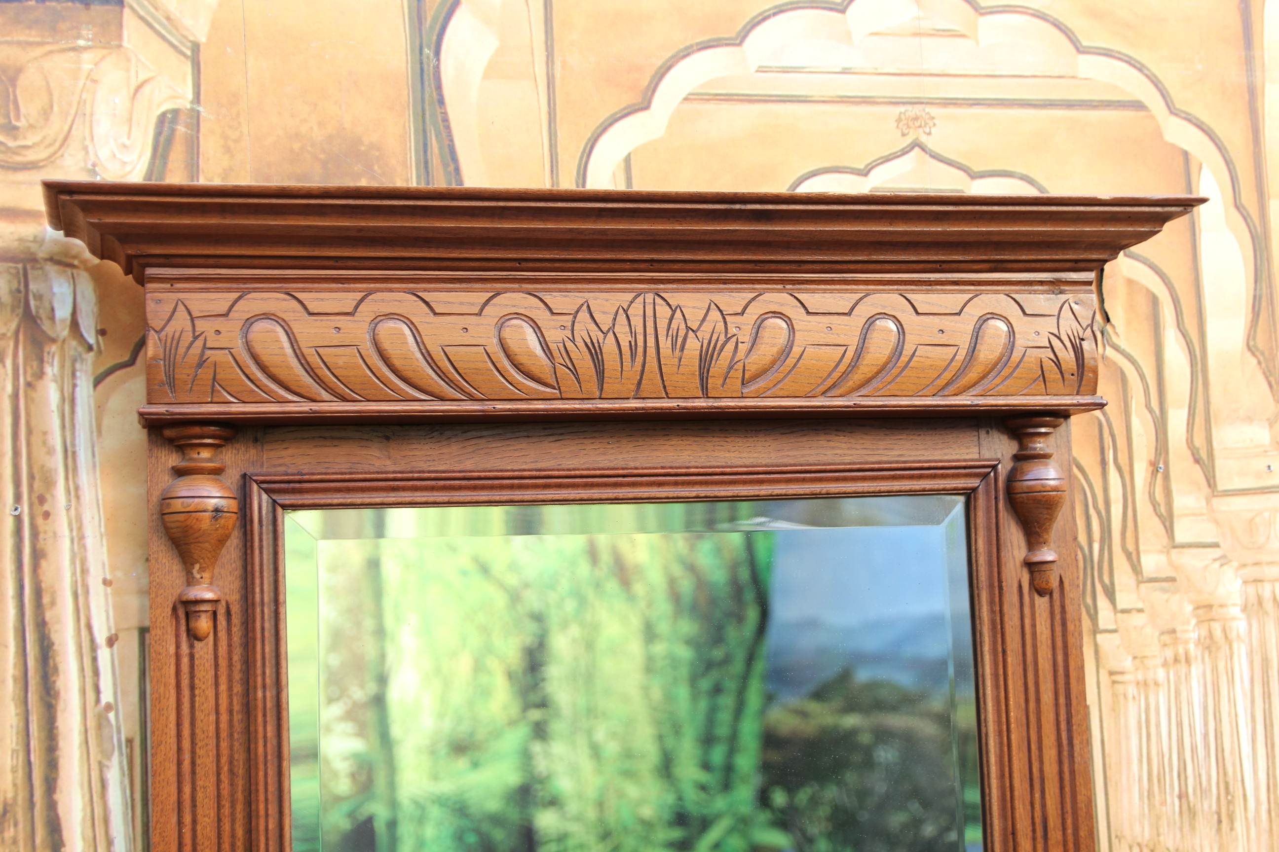 Das Spiegelglas ist geschliffenen und der Rahmen ist gefertigt aus massivem Eichenholz.