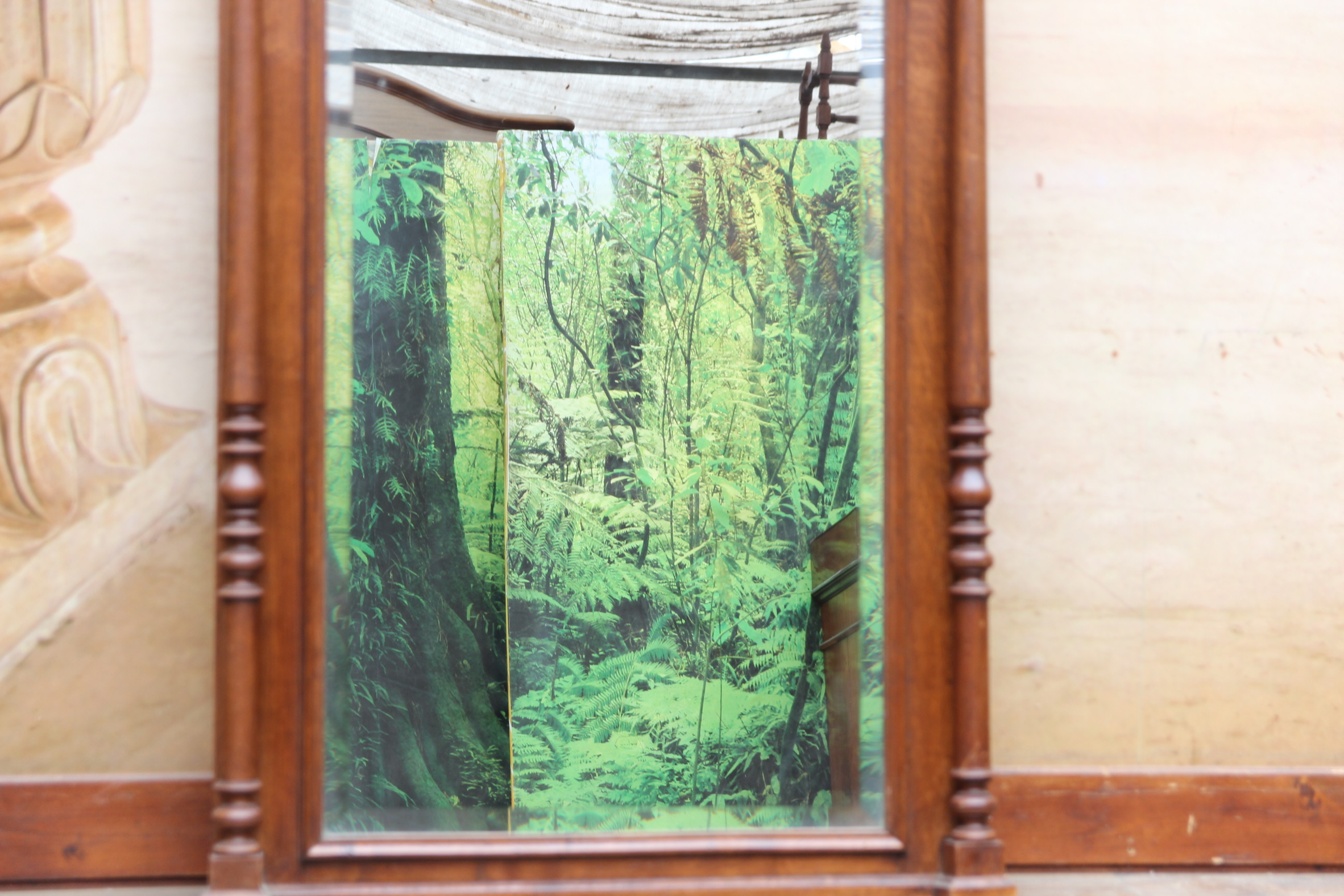 Das Spiegelglas ist geschliffenen und der Rahmen ist gefertigt aus massivem Eichenholz.