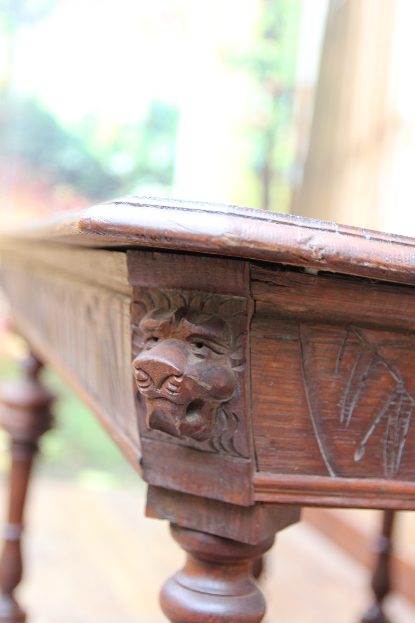 Geschmackvoller antiker & massiver Gründerzeit Esstisch mit traumhaften Kunstschnitzereien